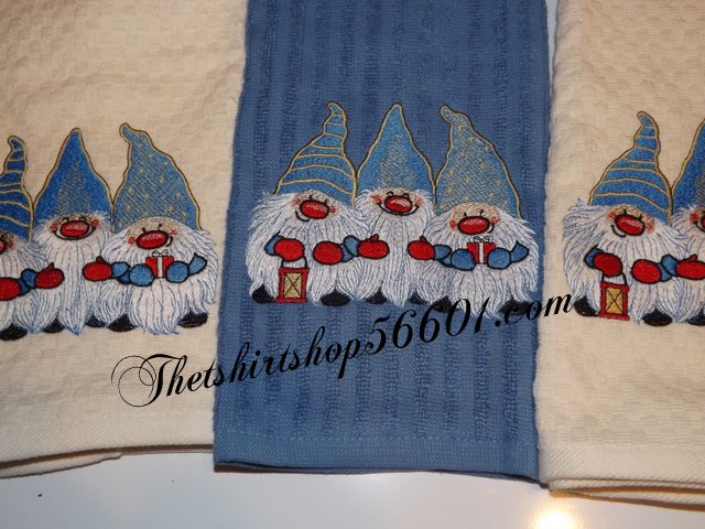 Embroidered Gnome Elf Dwarf Dish Towel